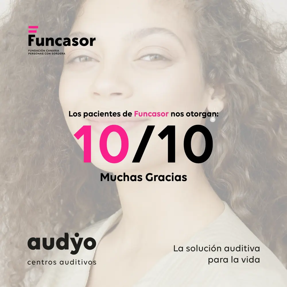 En los centros auditivos audyo, la confianza de nuestros pacientes es siempre nuestra mayor prioridad. Por eso, recibir el reconocimiento de entidades de referencia como la Fundación Canaria para las Personas con Sordera y sus Familias (Funcasor) es un motivo de enorme satisfacción para todo nuestro equipo.